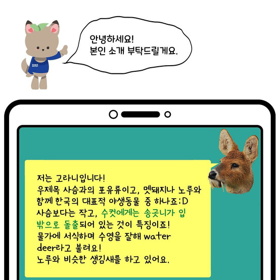 오늘은 고라니에 대한 카드뉴스를 가져왔어요🥰