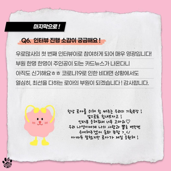 ‘우리 로아 많이 사랑해주세요’는 부원들에 대해서 더 자세히 알아보고자 기획한 인터뷰예요!